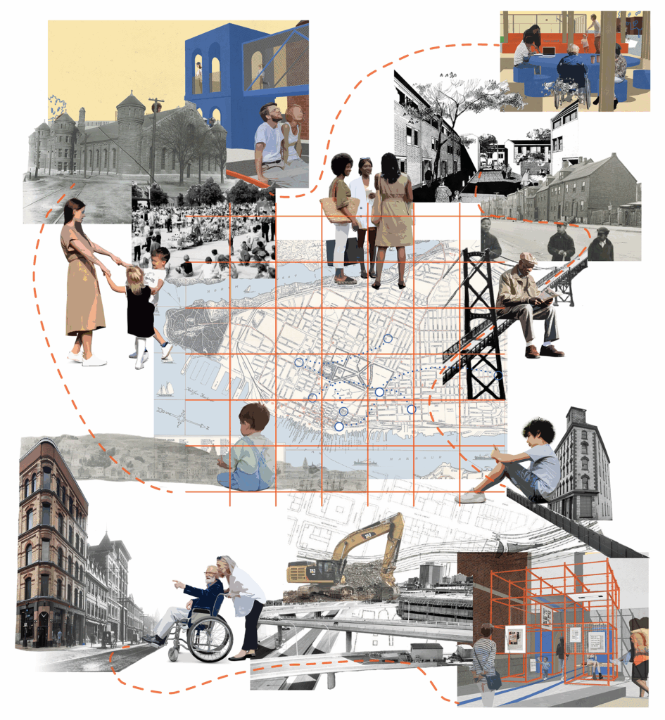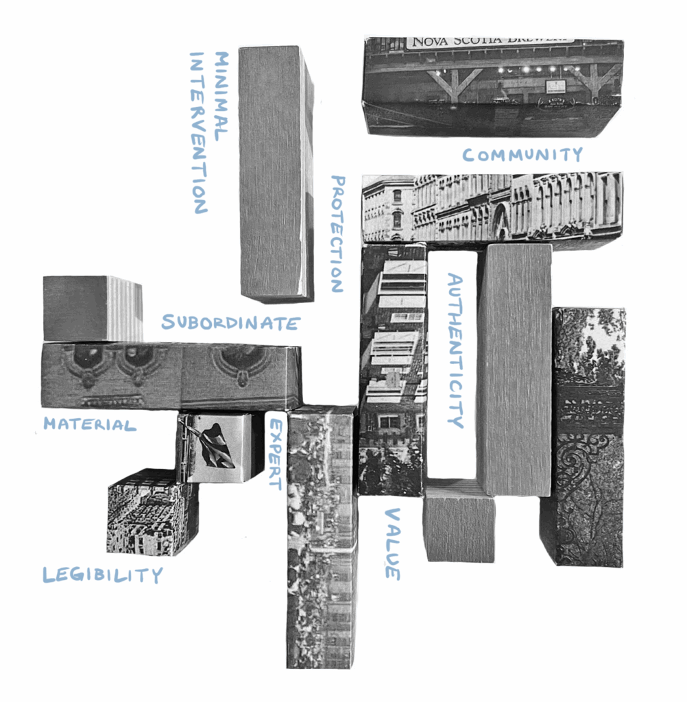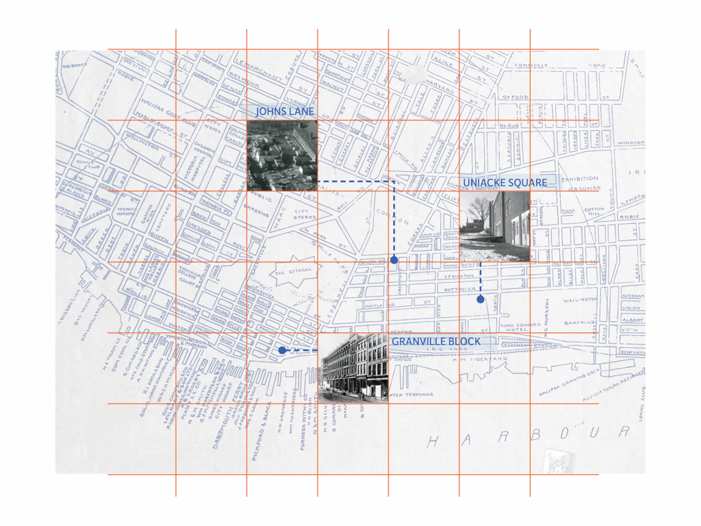The design component of this work applies these principles to selected sites in Halifax, NS, as seen in Figure 3, each representing an intersection between protected and erased histories. Heritage conservation in Halifax has long been a site of debate, with sharply divided opinions about what should be preserved, how, and for whom.22,23