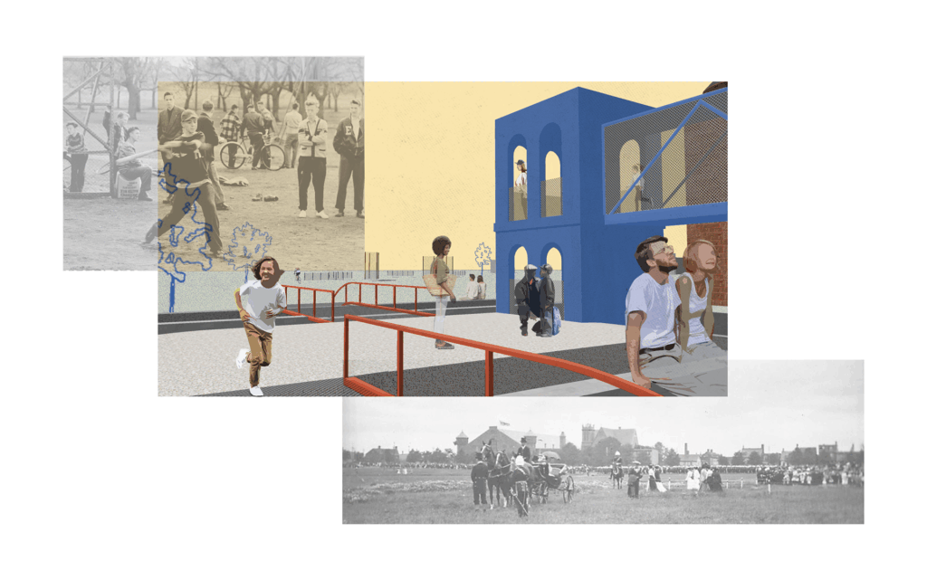 These strategies were selected in response to both the site’s constraints and its potential: its current closed-off condition, its adjacency to the Commons, and its historic use as a social anchor. While open-ended components and flexible elements are secondary here due to the flexibility already offered by the Commons itself, they remain present through the design’s unprogrammed open spaces and multi-purpose platforms. Playful forms are emphasized through the creation of levels, tiered seating, and a tower lookout structure, all referencing historic layers while fostering new intergenerational uses. In its new form, Johns Lane becomes a third place, a shared backyard, more intimate than the busy Commons, where stories are told, memories are recalled, and everyday heritage is brought back into play.