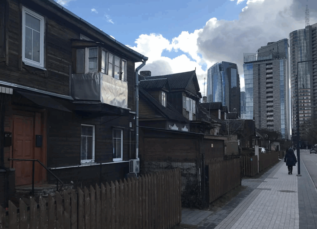 The neighborhood’s development (from a suburban settlement to a semi-dense urban area) has preserved many of these characteristics, particularly along Daugėliškio, Krokuvos, Lvivo, and Linkmenų streets.⁸ The continued use of locally sourced wood, often combined with traditional locally extracted materials such as lime and clay, reinforces both material continuity and local identity.⁸ By the mid-20th century, wooden houses dominated the area,⁹ and a significant number remain today, particularly in the Skansenas area.⁸