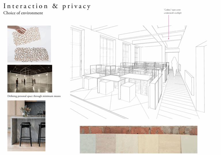 Images: The team were consulted through sharing plans, visuals, mood boards, diagrams and sketches to show the human experience, potential effects and human impacts of the spatial strategies and details.